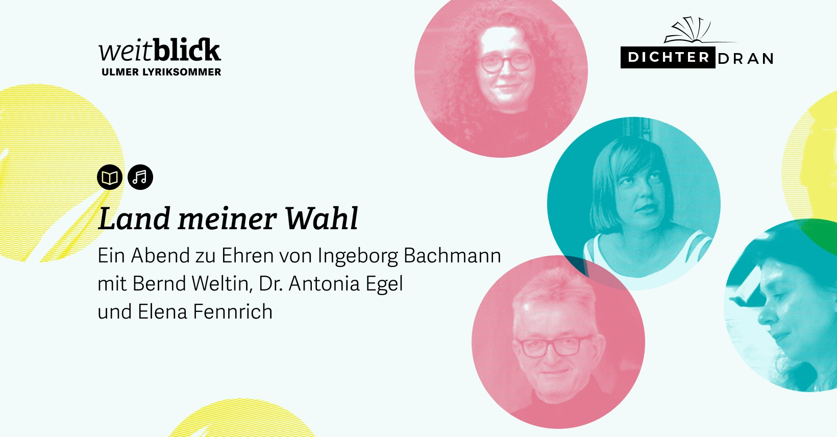 Freier Eintritt – Der Ingeborg-Bachmann-Abend wird gefördert durch die Stadt Ulm und die Baden-Württemberg-Stiftung im Rahmen des Literatursommers Baden-Württemberg. Er wird von Dichter dran e.V.