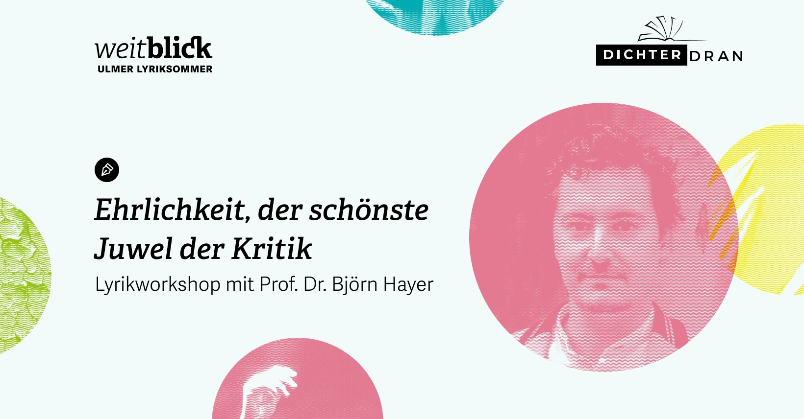 Bitte melden Sie sich via E-Mail für den Lyrikworkshop mit Björn Hayer an: projektleitung@ulmer-lyriksommer.de.