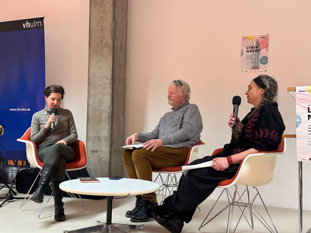 Einen weiteren Höhepunkt des Ulmer Lyriksommers bot die Ulmer Lyriknacht im Einsteinhaus Ulm am 24. Oktober 2025. Über Brücken lautet das Motiv des diesjährigen Lyriksommers, und das Brückenmotiv ist nicht nur für den Lyriksommer zentral, der sprachliche Brücken und auch Brücken zu Leser- und HörerInnen baut – der Begriff der Brücken spielt auch gerade in der jetzigen Krisenzeit eine wichtige Rolle. Bereits zum vierten Mal gab es nun die Ulmer Lyriknacht, dieses Mal mit der Dichterin Daniela Danz und den Dichtern Mirko Bonné und Levin Westermann.