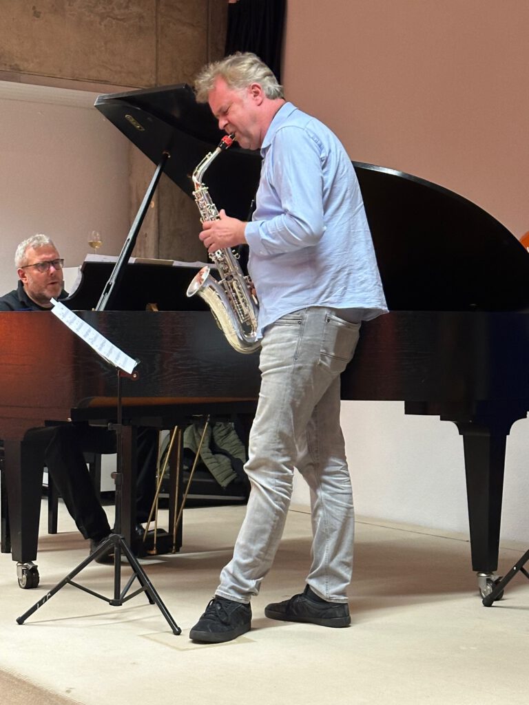 Die AutorInnen signierten viele Bücher und versanken in abschließende Gespräche mit dem begeisterten Publikum: auch die musikalische Umrahmung des Abends durch Dieter Kraus am Saxofon und Bernhard Sinz am Flügel erntete viel Applaus.